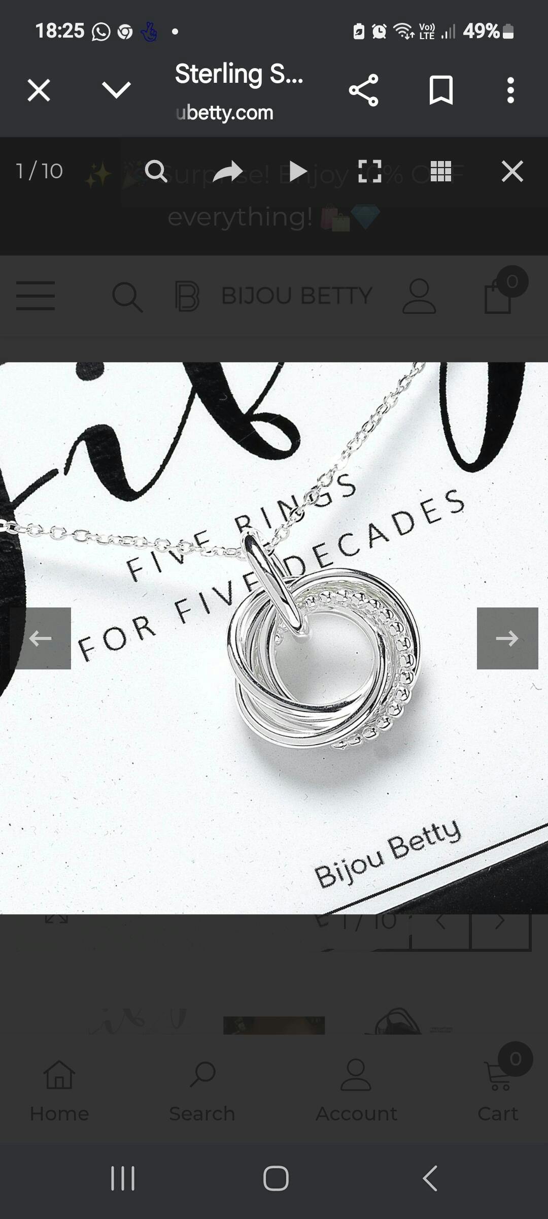 Celebrate her 50th with this Sterling Silver Necklace from Bijou Betty. Crafted from 925 solid silver, its five interlocked rings—one textured—mark five decades of life. The 16–18 inch adjustable chain suits any style. Gift-boxed with bag, tissue, and a card: "Fifty - five rings for five decades." Perfect for mums, daughters, sisters, or friends—add a custom tag. Order now to gift a stunning keepsake she’ll treasure forever!